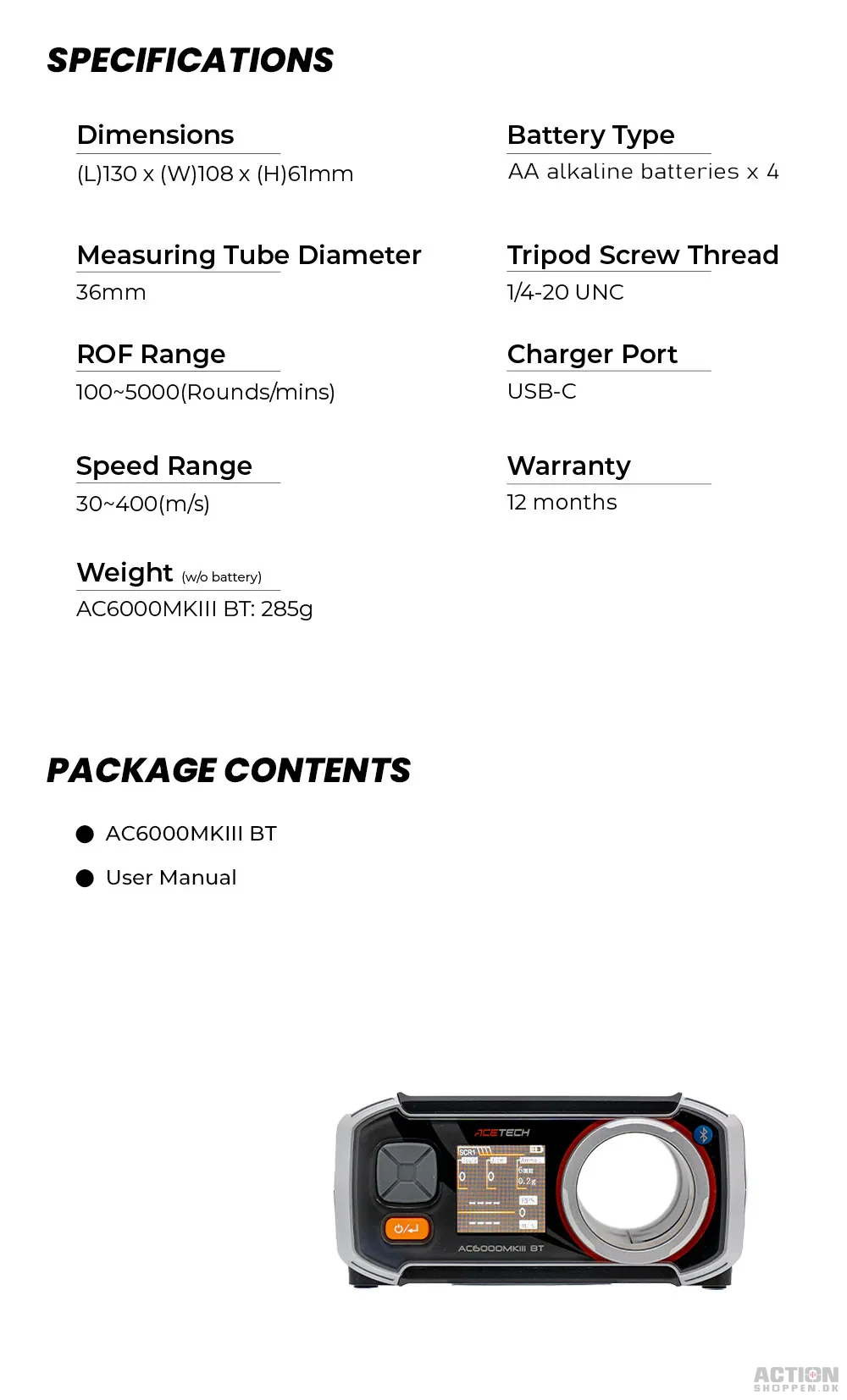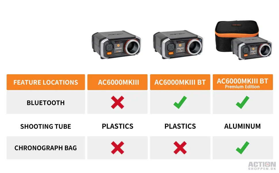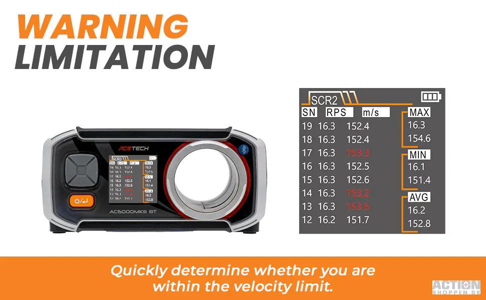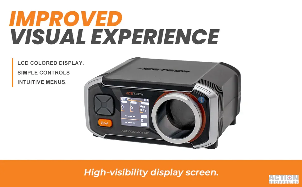 AC6000MKIII-serien har et kompakt og let design og er udstyret med avancerede sensorer, der giver meget nøjagtige aflæsninger. Dens brugervenlige grænseflade inkluderer et baggrundsbelyst LCD-farvedisplay, som giver mulighed for klarere visning af funktioner og data. Generelt er AC6000MKIII-serien et fremragende valg for airsoft-entusiaster, der søger at forbedre deres spil. Med sine avancerede funktioner og brugervenlighed kan denne kronograf hjælpe spillere med at tage deres airsoft-oplevelse til et nyt niveau.